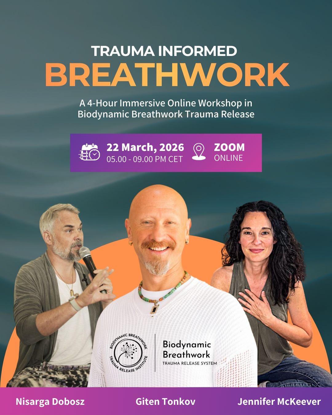Join this exclusive live online event for a direct, guided immersion into the Biodynamic Breathwork & Trauma Release System®️ (BBTRS®️) — a revolutionary, body-first approach that gently dissolves stored trauma, chronic stress, and tension. It uses the intelligent synergy of six elements: conscious breath, authentic movement, resonant sound, compassionate touch, conscious emotional expression, and deep meditation.